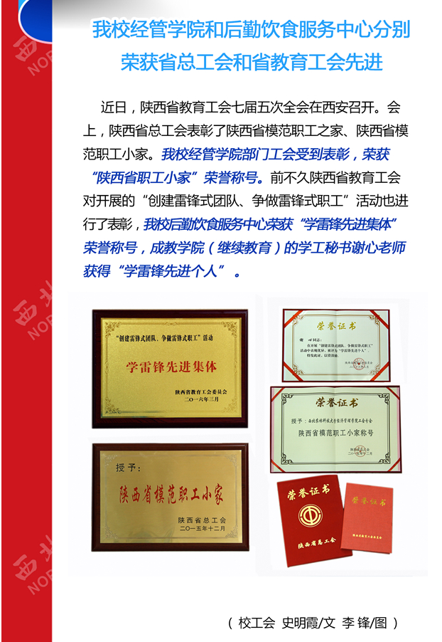 经管学院部门工会荣获陕西省总工会“陕西省模范职工小家”荣誉称号