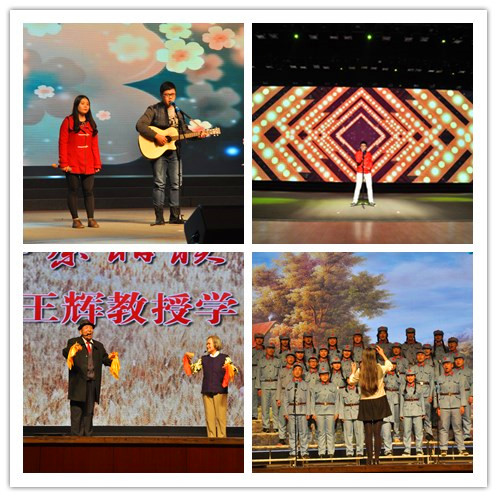 舞蹈结束后,是由工管1607班的同学们带来合唱《万泉河水》,悠扬的旋律、深情的演唱使在座的各位观众享受了一场音乐盛宴。随后是由邹宇琪等同学带来的舞蹈串烧,两种不同风格的舞蹈再次令现场沸腾。紧接着是胡频老师演唱的《天边的骆驼》,富有韵味的歌声,仿佛把人带到了那沉寂了千年的大漠,耳边的驼铃声依稀可闻。之后由朱嘉琳、王玲娟带来的的相声《男朋友女朋友》围绕男女生因为性格不同而产生的差异展开,笑点不断,把晚会推向新的高潮。经鸿一舞,管韵飞扬,由舞蹈队带来的舞蹈《淮水情兰花湾》讲述了一个如梦似幻的故事。之后的歌曲串烧更是精彩,由学院举行的感恩歌曲改编大赛优秀曲目《西农花落》,掀起了晚会的又一高潮,由校十佳歌手冠军周静带来的《野子》也再次征服了场下观众。