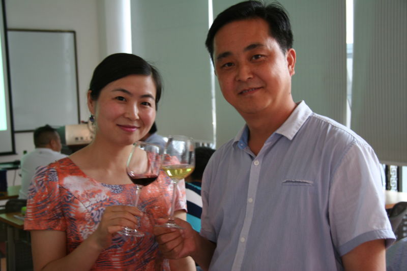 在讲解葡萄酒的品鉴方法时,史女士先后拿出6种不同的葡萄酒供大家品尝,大家摇着酒杯慢慢品着,随着介绍一看,二摇,三闻,四尝,回味着余香,让大家分辨出果香,酸甜苦还是臭鸡蛋味。史女士为大家介绍了葡萄酒的产地分布,著名的酒庄,如何选购,储存,以及饮酒的一些小常识。会后大家仍觉兴致未经,纷纷与史女士交流有关红酒品鉴的知识。全体学员与史女士互加微信,并与史女士合影留念,希望以后建立更长久的联系,此次活动不仅为大家了解了酒文化,而且增进了学员之间的沟通和交流。