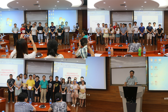 会上,我校研究生院副院长张静致辞并讲话,她首先代表学校向录取新生表示衷心祝贺,并全面介绍了我校作为国内985、211重点建设的农林高校的基本概况、研究生发展情况、师资队伍、学科建设和多渠道、多规格、多层次的研究生人才培养模式;BB贝博艾弗森官网副院长夏显力代表学院向加盟校MBA的学员表示诚挚欢迎,并介绍经管学院的发展情况、师资力量和在农业产业经济、农村金融、农村区域发展等研究领域的特色优势和获得的研究成果;MBA教育中心主任孟全省在讲话中介绍了中心发展历史、综合实力、教育特色、师资队伍、教务管理和培养方式、学制等,对录取新生提出了殷切期望和学习要求,希望学员们统筹安排、端正学风、扎实学习、勇于实践,争取MBA学业取得满意答卷。在热烈的掌声中,出席会议的院校领导为2016级MBA录取新生一一颁发《录取通知书》并合影留念。录取新生贺辉等三名代表在发言中,表达了被我校录取的喜悦心情和感想感受,一致表示要认真学习、努力实践、加强交流、提升能力,以优异成绩报答老师、回报学校。
