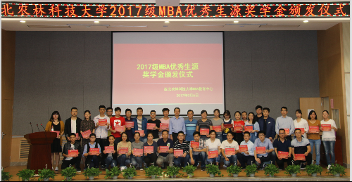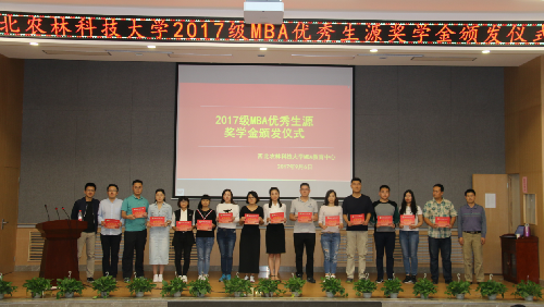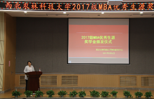 9月6日下午,经管学院C101报告厅,欢快的颁奖进行曲中,我校2017级MBA奖学金颁发仪式郑重举行,BB贝博艾弗森官网书记姚晓霞研究员、BB贝博艾弗森官网院长赵敏娟教授、BB贝博艾弗森官网副书记温晓林副研究员、BB贝博艾弗森官网副院长刘天军教授、BB贝博艾弗森官网院长助理石宝峰副教授、MBA教育中心常务副主任孟全省教授等出席了颁奖仪式。仪式由MBA中心副主任王军智主持。