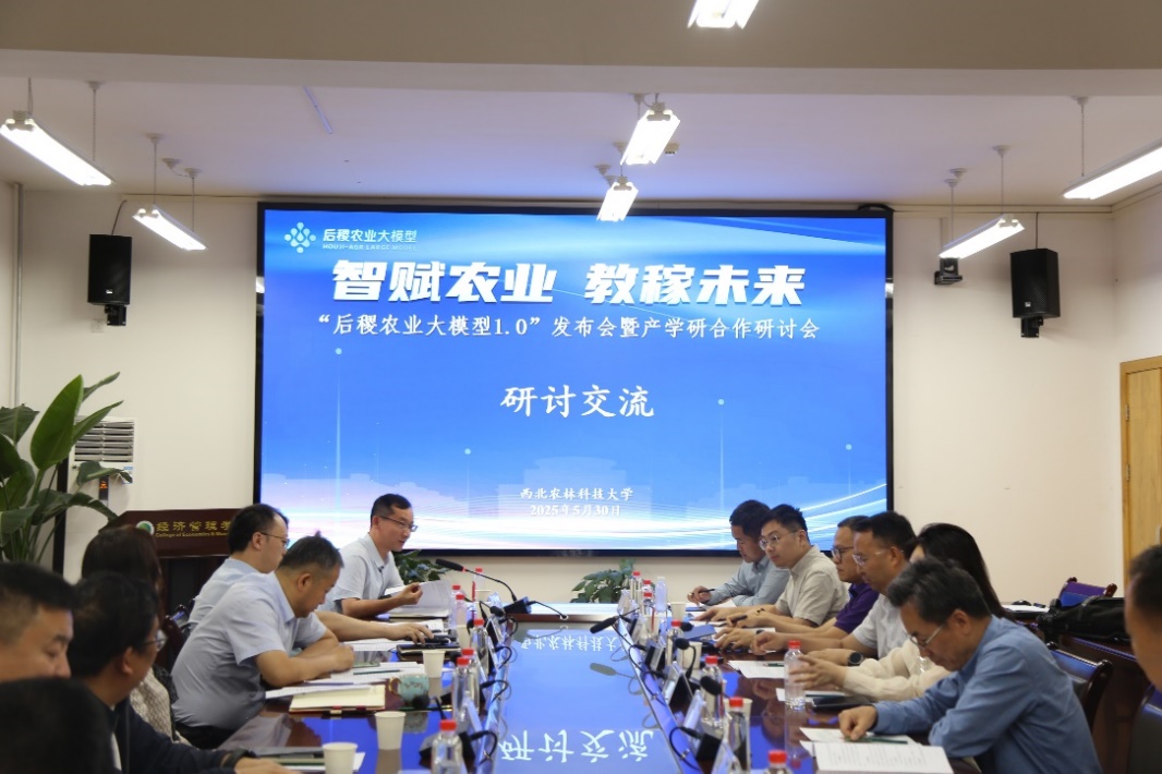 5月30日,“后稷农业大模型1.0”发布会暨产学研合作研讨会在我校BB贝博艾弗森官网C304会议室举行,陕西农发集团、杨凌示范区科技创新和转化推广局、中国农业银行咸阳分行、杭州艾格睿科技有限公司等政府部门、银行、企业受邀参加,学校教务处、科学技术发展研究院、新农村发展研究院、信息化管理处、植物保护学院、信息工程学院、理学院、园艺学院、BB贝博艾弗森官网等部门负责人参会,会议由经管学院院长石宝峰主持。
