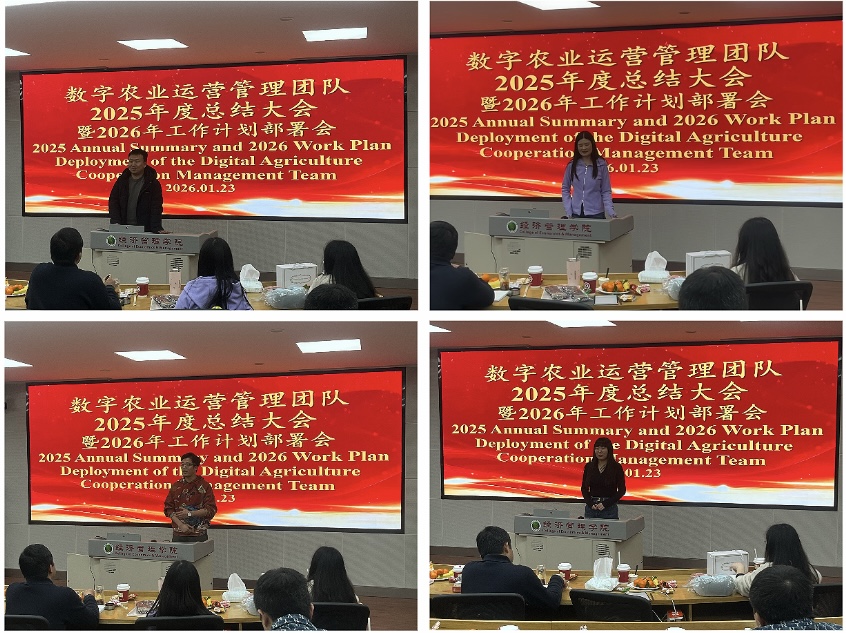 2026年1月23日,BB贝博艾弗森官网数智农业运营管理团队2025年度总结大会暨2026年工作计划部署会圆满召开。会议全面回顾团队2025年在科研创新、项目立项、社会服务、人才培养等方面的工作成绩,现场设置互动抽奖环节,师生代表分享心声,深度凝练团队文化内核,为新一年发展凝聚起同心奋进的更大力量。