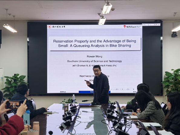 2024年12月19日下午,BB贝博艾弗森官网西部农村发展研究中心在C304会议室成功举办了“预约特性与小规模优势:共享单车的排队分析”主题的学术研讨会。本次会议主持人为孙自来老师,在对王宇教授简单介绍后,本次研讨会正式开始。