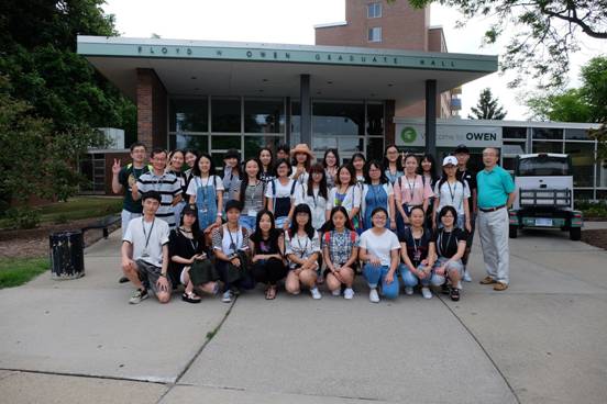 7月18日,密西根州立大学的研究生Dannel为访学团成员进行在美校生活注意事项的讲解,同学们认真倾听并作笔记。讲解结束后,由尹润生教授带领大家参观并熟悉密西根州立大学的校园。随后,大家来到教室开展访学交流会,会上依次进行自我介绍,并写下自己到美国的感想及计划。最后尹教授为同学们介绍了项目的行程安排,正式开启访学之旅。