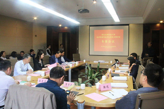 本次会议的评估专家均来自国内农林经济管理、工商管理、公共管理以及应用经济学相关领域,熟悉研究生培养与学位授予工作。他们中有南京农业大学朱晶教授与欧名豪教授,浙江大学钱文荣教授,西安交通大学冯根福教授,东北林业大学田国双教授,以及西北农林科技大学霍学喜教授,其中朱晶教授担任评议组组长。学位授权点负责人罗剑朝教授、陆迁教授、孔荣教授和赵凯教授从评估指标体系、学位授权点的基本情况、目标标准、基本条件、人才培养和学科点特色六个方面分别就农林经济管理博士一级、应用经济学硕士二级、工商管理硕士二级以及公共管理硕士二级学位授权点的建设情况做了详细汇报。