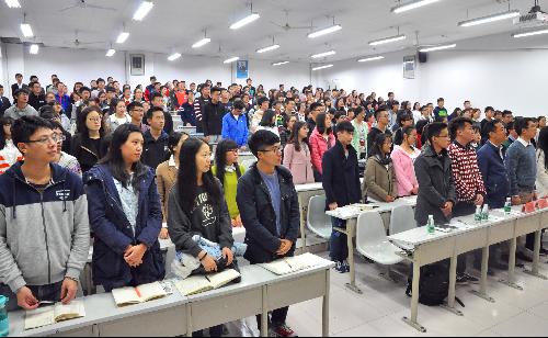 仪式结束后,陈龙为全体学员进行了题为“我们的创新创业”讲座。讲座伊始,陈龙提出在创新创业中思维和方法的重要意义,并通过滴滴打车、Facebook等案例为同学们充分讲解了市场真实需求、产品前景及创业热情在创新创业中的重要性;他又指出创新应聚焦真实,不要被表面问题所局限,而应通过自问、自答、自省、深度观察、深度访谈等方法看清事物的本质问题。最后还设有提问环节,同学们将自己的疑惑与陈龙分享,并得到了专业详细的解答。幽默生动的讲座赢得了现场观众的阵阵掌声。