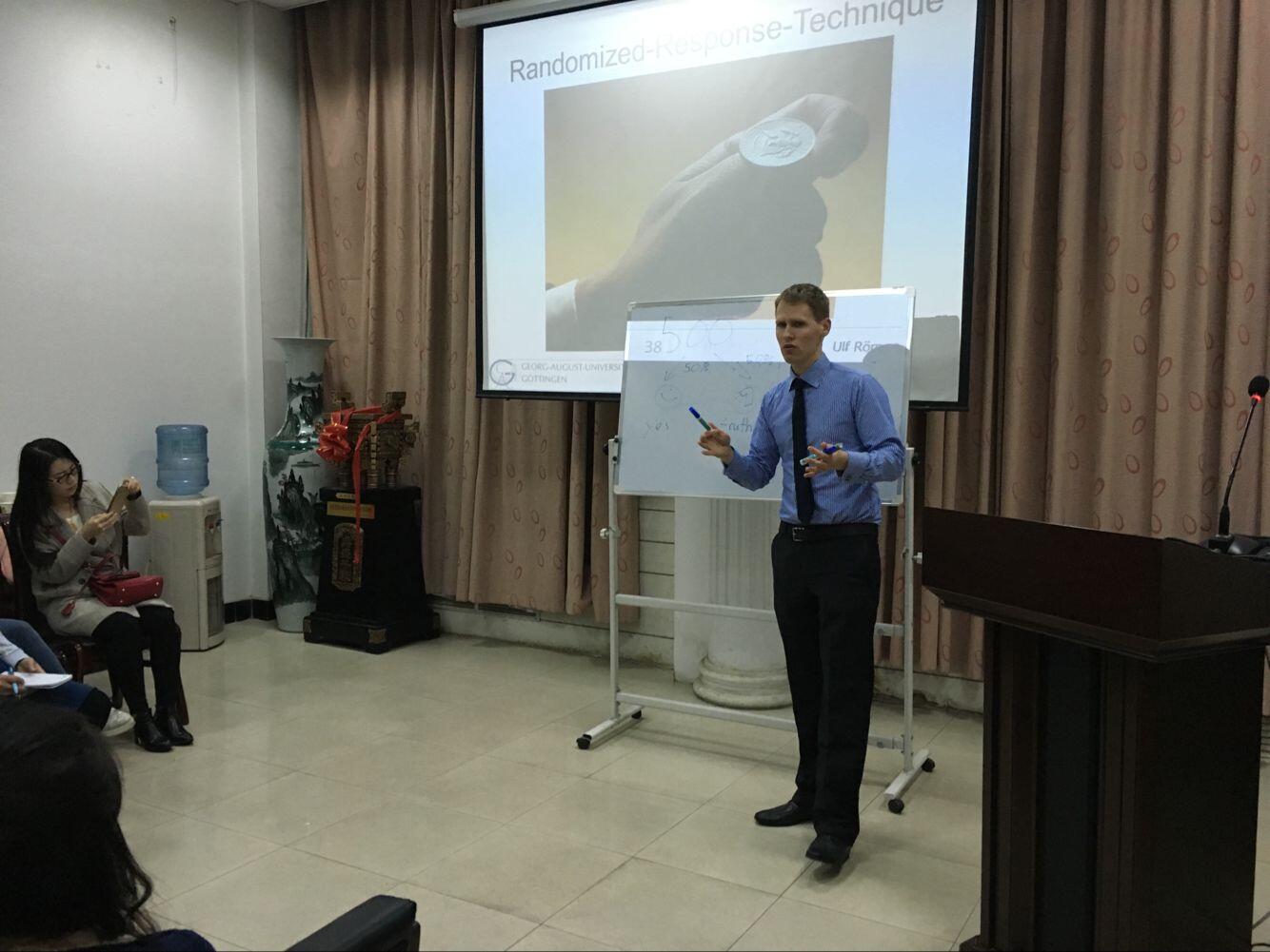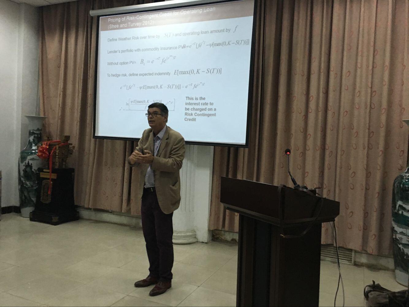27日,Turvey教授和Ulf博士应邀在601会议室为贝博官网部分青年教师和博硕士研究生分别作了“Insuring Agricultural Loans with Risk-Contingent Credit”和“How does asymmetric information in individual microfinance”的学术报告,回答了师生的相关提问,并就相关研究领域的热点问题与贝博官网师生进行交流探讨。两位专家开放的授课风格,前瞻的研究视角,新颖的计量方法,使与会师生深受启发。