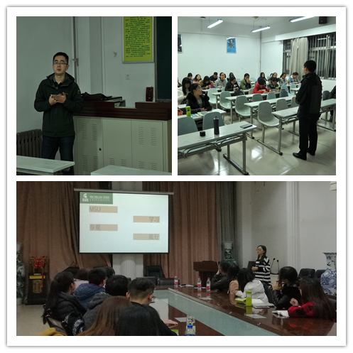 本次访学经验交流会展示了贝博官网学生访学的学习工作状态,让同学们了解了申请美国MSU访学的基本流程,极大地吸引了同学们的热情和兴趣,通过积极的互动交流,使同学们对出国访学有了更细致、更深刻的了解。