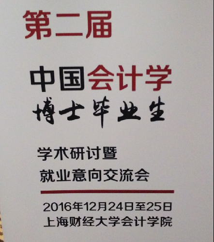 由重庆大学、东北财经大学、对外经济贸易大学、华中科技大学、暨南大学、南京大学、上海财经大学、武汉大学、西南财经大学、中国人民大学、中南财经政法大学、中山大学、中央财经大学联合主办、由上海财经大学会计学院承办的第二届中国会计学博士毕业生学术研讨暨就业意向交流会于2016年12月24-25日在上海隆重召开,贝博官网管理学系主任孔荣教授和会计教研室主任李民寿副教授应邀参加了会议,并就我校会计专业人才招聘政策做了宣讲。