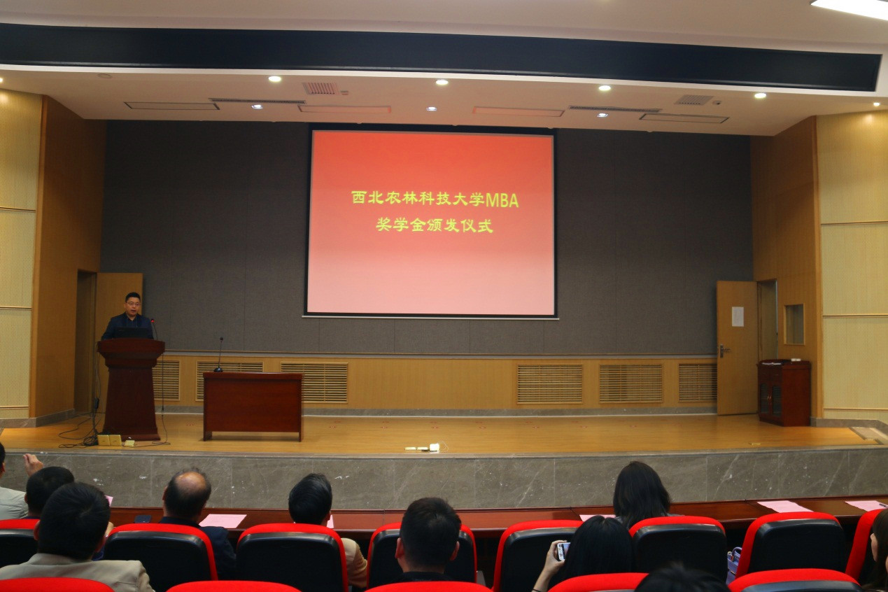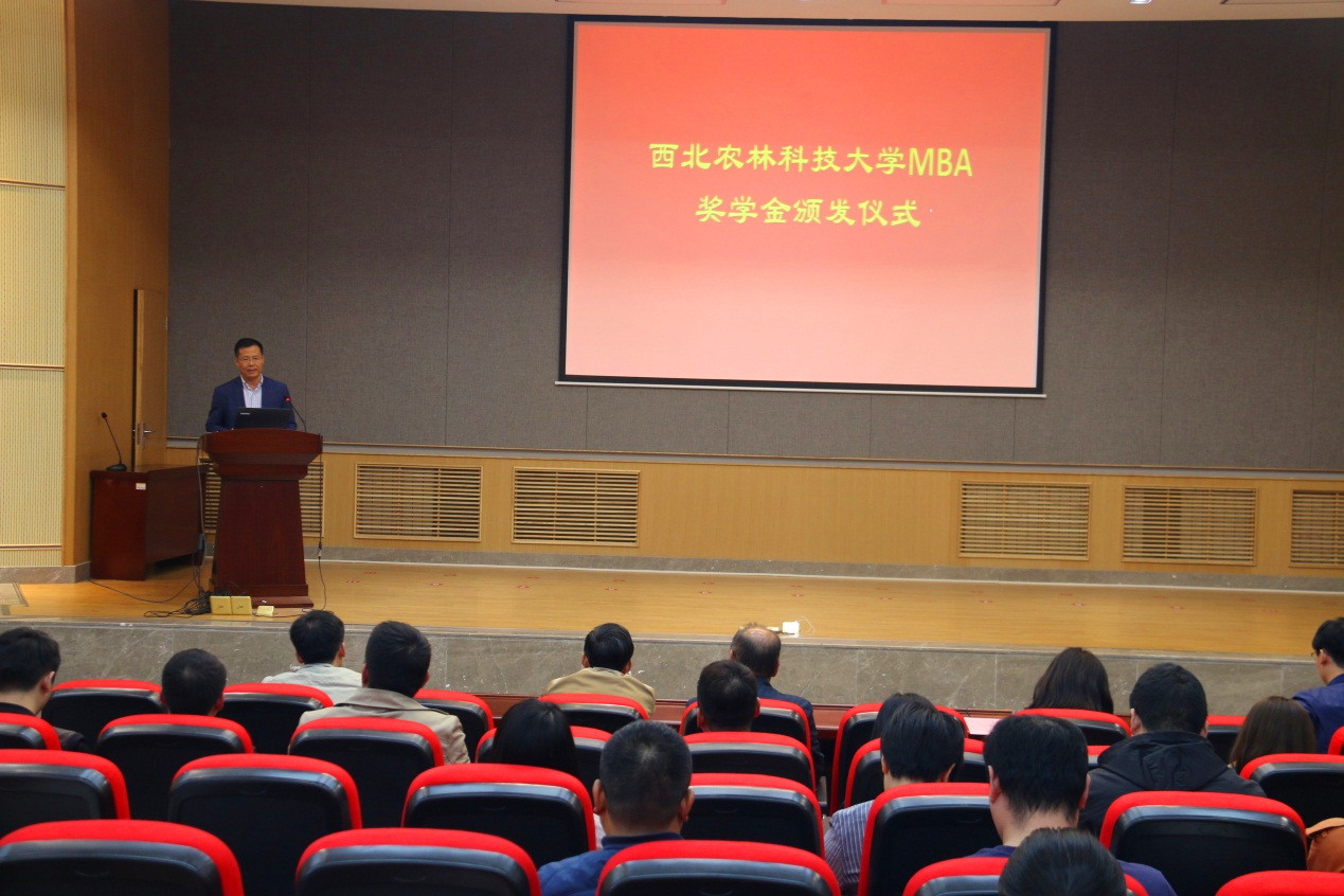 10月7日下午,西北农林科技大学2019级工商管理硕士(MBA)优秀生源奖学金颁发仪式在BB贝博艾弗森官网C101隆重举行。仪式由MBA教育中心副主任王军智主持。BB贝博艾弗森官网党委书记张岁平、副院长夏显力、副院长石宝峰、党委副书记张军驰、院长助理牛荣、MBA教育中心常务副主任孟全省和任课教师代表王礼力教授出席了仪式。