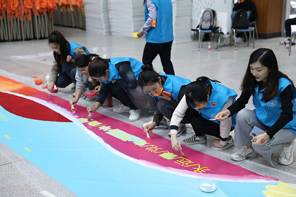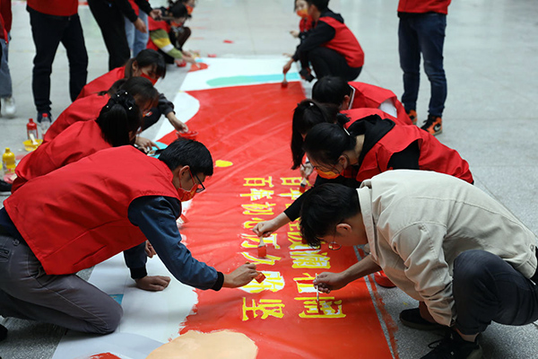 拓展活动在“我和我的祖国”合唱声中,在“庆祝中国共产党成立100周年”的主题手绘中结束。同学们对学校、对彼此从陌生到熟悉,在配合、协作中,在服务、被服务中,一种新的信任和默契悄然滋生,诚朴勇毅烙入血脉。