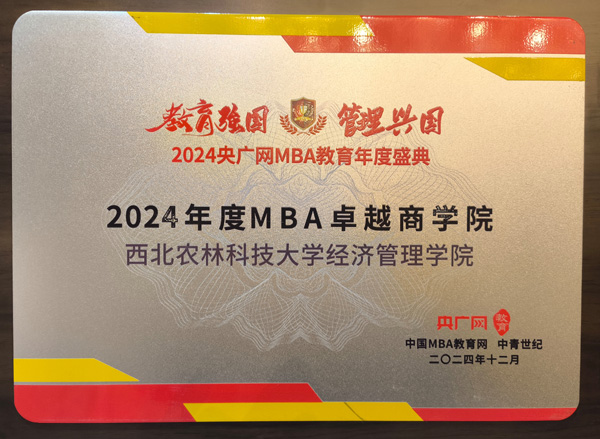 近年来,西北农林科技大学MBA教育在社会各界赢得了普遍赞誉。先后荣获第十四届、第十五届、第十六届“尖烽时刻”全国商业模拟大赛总决赛一等奖、二等奖,中国研究生企业管理创新大赛三等奖、全国大学生“互联网+”创新大赛总决赛三等奖以及中国MBA创业大赛、全国管理案例精英赛、西部TOPMBA睿创大赛、亚太地区商学院沙漠挑战赛、新疆挑战赛等赛事荣誉50余项;获评全国MBA教指委“全国百篇优秀管理案例评选最佳组织奖”、央广网“2024年度MBA卓越商学院”、腾讯网“2017年度优质特色MBA项目”、中国商学院领袖年会“学子心中最具潜力MBA项目”、中国MBA发展论坛“十大校园经典活动”、中国MBA领袖年会“十佳特色商学院”“中国MBA卓越商学院”、丝路全球商学院 MBA发展论坛“最具品牌价值MBA项目”等荣誉40余项;2014年入选《中国最具价值MBA-TOP40》(光明日报社出版社)、2019年入选中国商学院最佳MBA项目TOP50,2020、2021、2022、2023、2024年度连续入选中国商学院最佳MBA项目TOP100(MBA China和《经理人》杂志发布);200余名MBA师生、校友荣获“中国MBA新秀100”、“中国优秀MBA干部”、“中国MBA杰出人物”、“中国MBA十大精英人物”、“中国商学院推荐杰出职业经理人”、“丝路全球商学院MBA新秀奖”、“中国MBA十大创业成就奖”、“MBA院校卓越领袖奖”、“商科领军人物”、“优秀MBA指导老师”、“最受欢迎商学院教授”、沙赛“卓越功勋人物”、“中国MBA十大贡献奖”等多项殊荣。