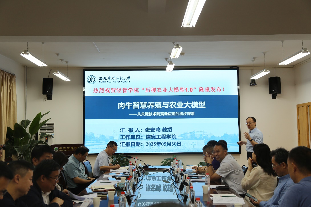 5月30日,“后稷农业大模型1.0”发布会暨产学研合作研讨会在我校BB贝博艾弗森官网C304会议室举行,陕西农发集团、杨凌示范区科技创新和转化推广局、中国农业银行咸阳分行、杭州艾格睿科技有限公司等政府部门、银行、企业受邀参加,学校教务处、科学技术发展研究院、新农村发展研究院、信息化管理处、植物保护学院、信息工程学院、理学院、园艺学院、BB贝博艾弗森官网等部门负责人参会,会议由经管学院院长石宝峰主持。