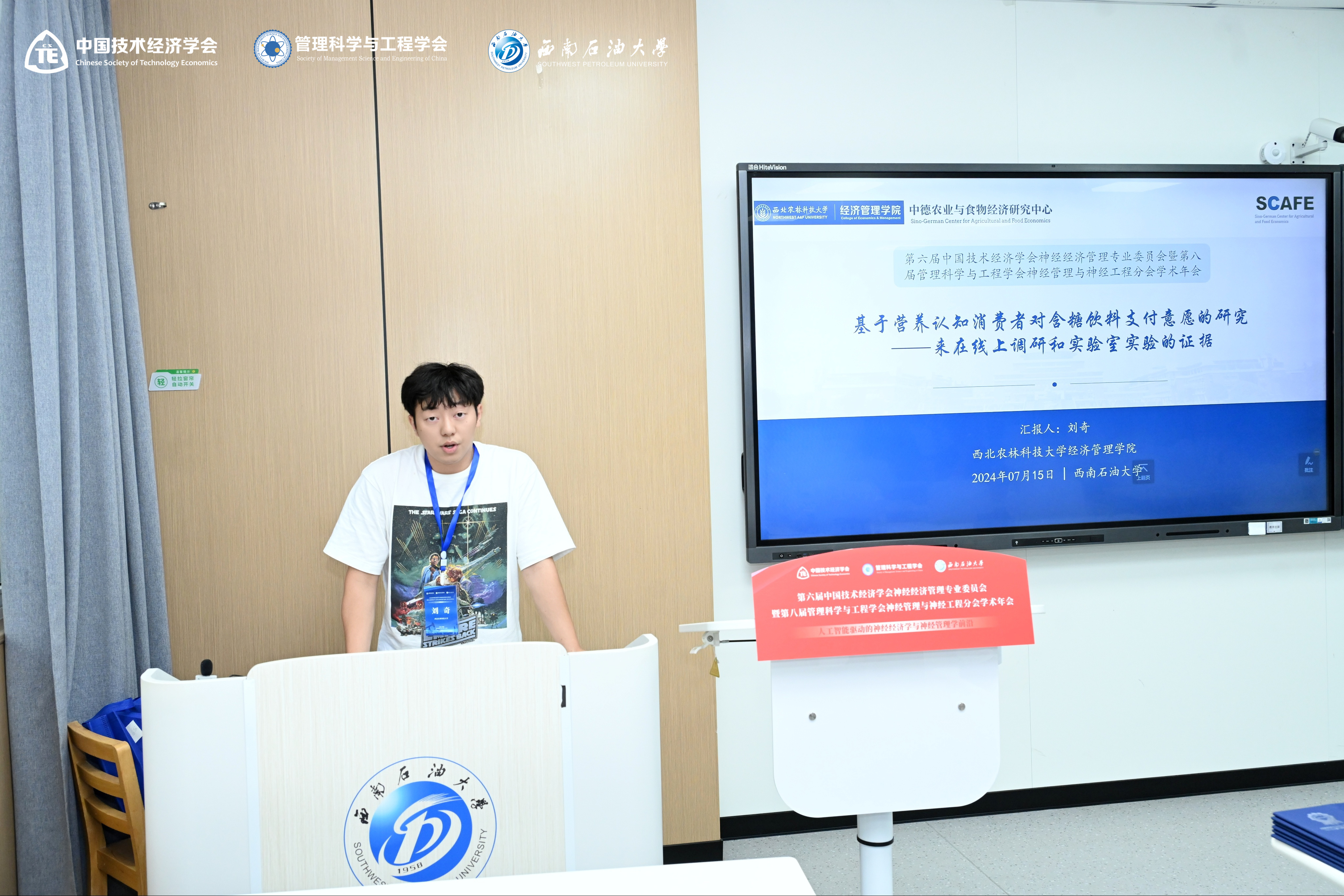 2024年7月15日,由中国技术经济学会神经经济管理专业委员会、管理科学与工程学会神经管理与神经工程分会、西南石油大学主办,西南石油大学BB贝博艾弗森官网承办的“第六届中国技术经济学会神经经济管理专业委员会暨第八届管理科学与工程学会神经管理与神经工程分会学术年会”在西南石油大学召开。团队研究生刘奇受邀参加此次会议。