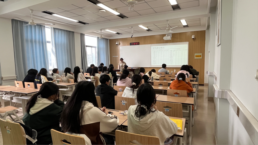 班会伊始,班长王家英围绕本学期班级学风建设情况作详细汇报,从学业成绩分布、学习互助活动开展等多个维度,全面复盘了班级整体学习风貌,并分享学习经验。雍双渠既肯定了同学们在专业学习、竞赛参与中取得的进步,并提出改进建议,鼓励大家以更饱满的状态投入后续学习,营造互帮互助、共同进步的优良班风。