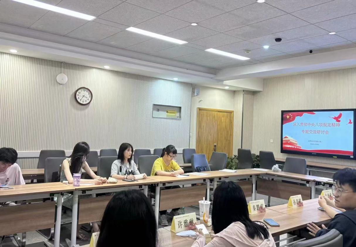 6月18日,应经学硕党支部在C403会议室举办深入贯彻中央八项规定精神专题交流研讨活动,由党支部书记王晓赫同志主持,支部全体党员参与。此次研讨活动旨在深化党员对中央八项规定精神的理解,更好地发挥模范带头作用,树立支部良好形象。