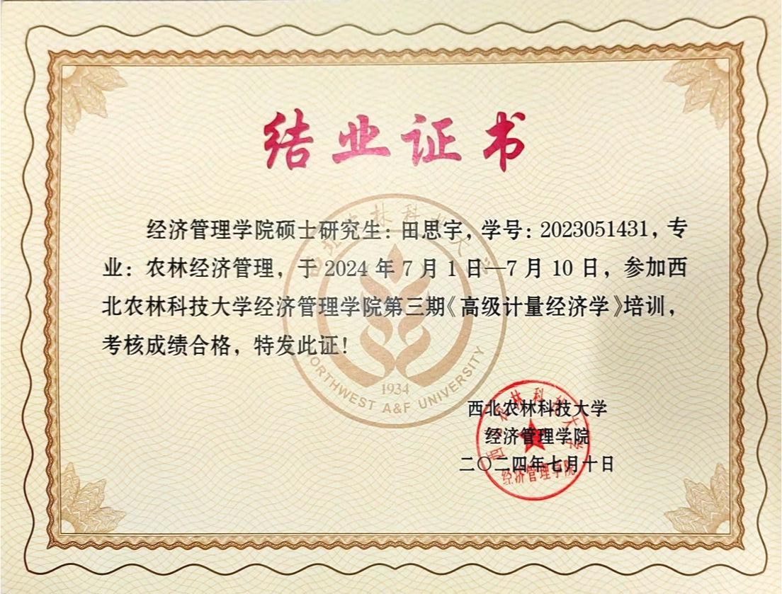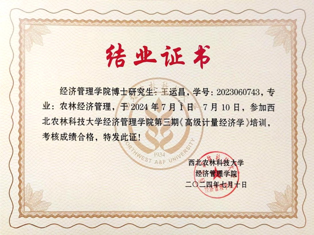 7月1日-10日,为夯实研究生高级计量经济学理论基础,提升应用计量经济学方法从事经济研究的能力,BB贝博艾弗森官网邀请郑志浩讲座教授、美国SAS研究所首席计量经济学家孙传忠博士、中国农业大学BB贝博艾弗森官网陈祁晖教授以专题形式讲授高级计量经济学知识,开展了一场为期10天32学时的高级计量经济学培训。团队博士研究生王运昌,硕士研究生沈霜、田思宇、杨婕妤全程参加了本次培训。