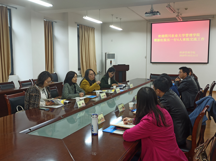 傅新红院长首先详细介绍了四川农业大学管理学院概况、师资力量、农管专业建设情况。汪红梅副院长对贝博官网的发展历程、师资队伍、本科教学、专业设置、在校学生、教学实践、实验室建设等基本情况作了详细介绍。双方人员重点就本科一流专业建设、课程设置与建设、本科实验和实践教学、学科建设、研究生培养、科研团队的组织、研究中心的运作等方面进行了深入交流和探讨。