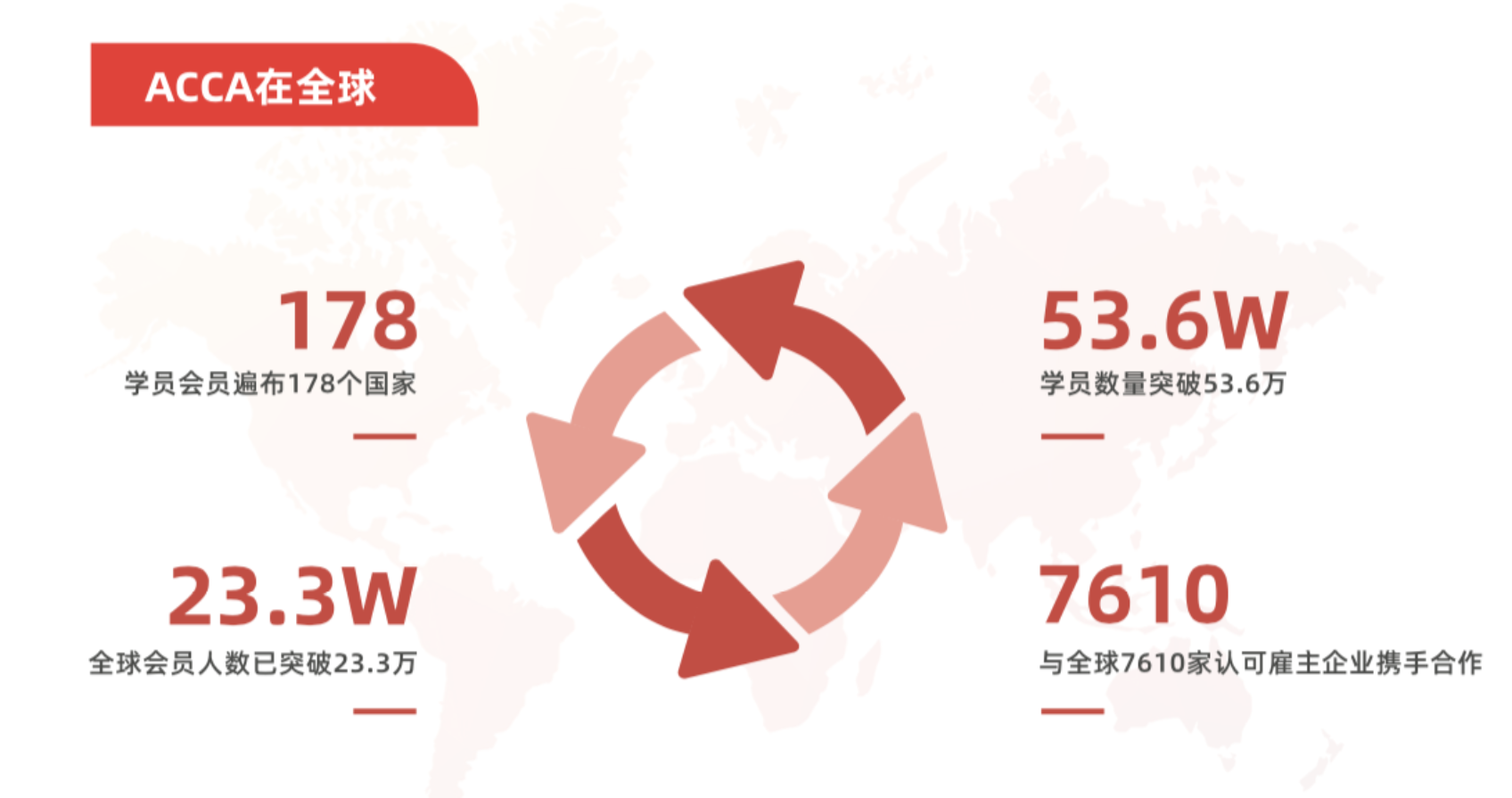 ACCA证书受到全球180多个国家和地区的认可,普遍在留学移民中惠及。目前全球有超过7610家认可ACCA的雇主企业,国内已超过800+家。ACCA对于立志于向商业社会发展的学生,是其在求职和升学过程中最有权威性、说服力的证书之一。