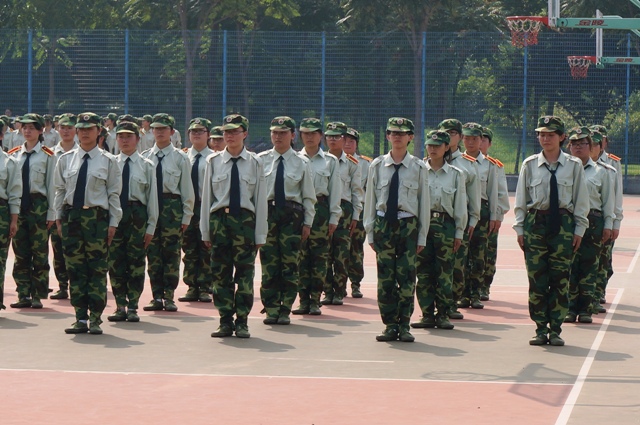 上午的开学典礼暨军训动员大会结束后,下午,新生们正式开始了他们在大学里的第一堂课��军训。在炎炎夏日的热浪之下,穿着庄严军装的贝博官网新生如同一片绿海,抵抗着灼热的阳光,认真完成教官教导的每一个动作。期间,虽有个别新生由于身体不适需要稍事休息,但为了不拖连队后腿,待恢复后便迅速要求归队训练,鼓舞了连队士气。除此之外,其他新生都全程坚持了下来,体现了贝博官网新生刻苦、耐劳、坚忍不拔的精神。他们的表现令教官们十分满意,连连称赞。贝博官网14级新生的两位辅导员老师也穿上军装,陪伴在训练场上,时刻关注着同学们的身体状况,确保新生军训的绝对安全。助理班主任们也不时到训练场上关注着同学们的表现,在背后默默为他们加油鼓劲。辅导员老师和助理班主任们的关怀,给在炎热中湿透衣襟的新生们送上了清凉的微风,让他们对接下来应对军训的挑战充满了信心。