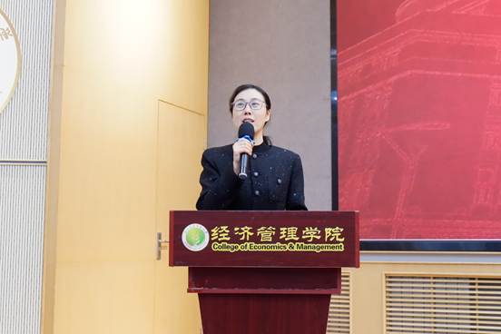 大会第三项,院党委副书记胡巧娟老师作了激情洋溢的动员讲话。她大力点赞同学们积极报名、勇于挑战的热血态度,鼓励大家在赛场上尽情展现经管青年的拼搏精神与昂扬风貌,把毅力与协作发挥到极致,用汗水点亮青春,为学院赢得荣誉!
