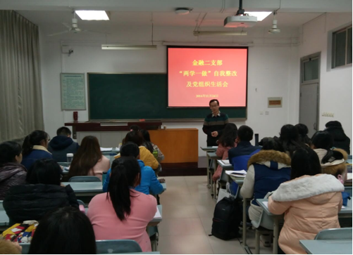 11月24日,BB贝博艾弗森官网金融二支部在南校区1407教室召开支部党员会议,会上首先为党支部成员、支部的自我批评,之后集中学习了“两学一做”重要内容及十八届六中全会精神。会议由支部副书记袁涵主持,支部全体党员、预备党员参加。