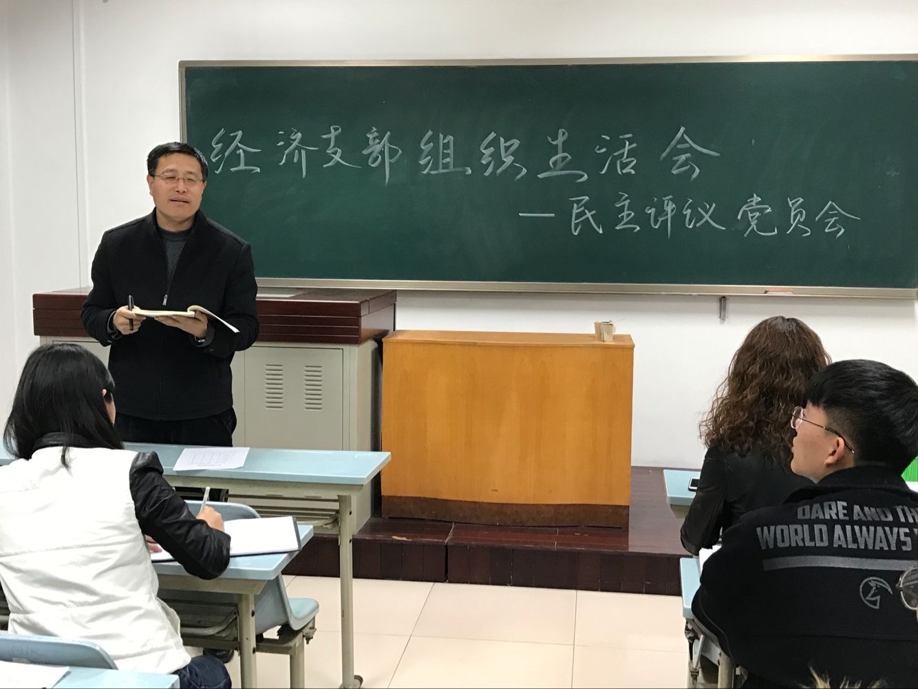 为学习《中共中央组织部关于在“两学一做”学习教育中召开专题组织生活会和开展民主评议党员的通知》文件精神,在校党委“两学一做”学习教育安排以及院党委的工作指示下,3月20日晚,经管学院经济党支部在南校区S1308教室开展民主评议党员组织生活会,院党委委员吕德宏老师、经济党支部书记雍双渠及党支部全体成员出席本次会议。