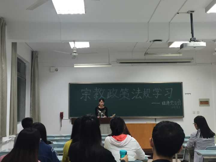 2017年9月7日晚上七点半,经济党支部在南校区一号楼举行了“宗教政策法规”专题学习活动。活动由支部书记雍双渠主持,支部全体党员和积极分子参加了本次学习活动。