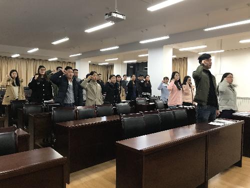 会议最后,支部书记吴春生带领全体支部成员面向党旗庄严宣誓,并向转正党员提出要求:希望加强理论知识学习,以更高标准严格要求自己,在思想上、行动上做一名合格党员。