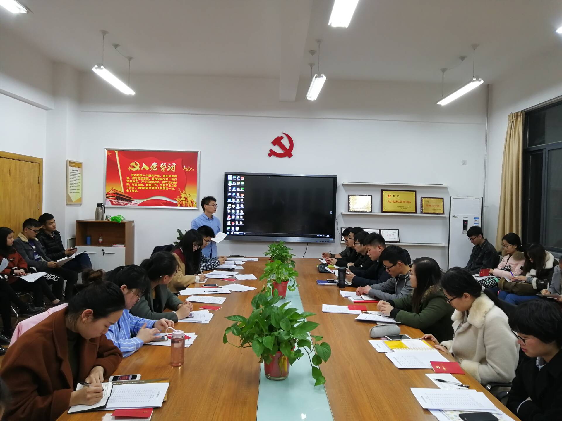 会上,张蚌蚌书记对这一年来支部的工作进行总结:支部组织了对十九大报告的学习,对预备党员转正和发展党员做了充分准备,但因为工作时间冲突等原因,十二月准备的红色教育活动未能落实,没有及时带领大家学习中央一号文件精神等。接下来,张老师就以上存在的问题提出整改措施,计划在新的一年里进行两到三次讲座学习,邀请学院专家重点针对国家乡村振兴战略进行讲解,带领大家学习习近平新时代中国特色社会主义思想,组织一次红色教育为主题的参观活动。