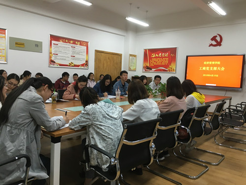 为了扎实推进工商党支部各项工作,4月10日晚,工商党支部于经管学院C205会议室召开支部大会,支部书记丁坤主持会议,工商党支部全体成员参会。