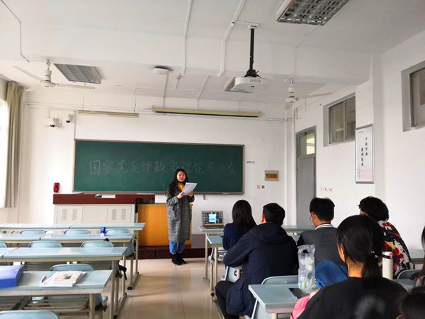 为紧跟时代步伐,及时了解时政热点,国贸党支部于3月20日下午在南校区一号教学楼开展政治理论学习会;会议由党支部副书记郑紫彤主持,支部所有在校成员参加。