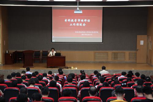 为加快推进本科审核评估工作,动员全院教师以饱满的热情、良好的精神风貌迎接本科教学审核评估工作。6月21日下午,贝博官网在C101报告厅,召开本科教学审核评估工作推进会。教务处处长陈玉林教授受邀参加,学院领导班子成员、全院教职工参加了此次培训。会议由学院党委书记姚晓霞主持。