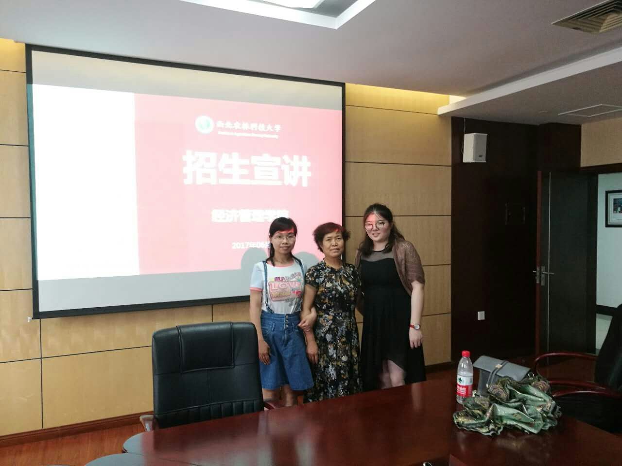 6月23日上午,宣讲团队在南京农业大学BB贝博艾弗森官网宣讲。参加宣讲会的同学对报考贝博官网研究生产生了浓厚的兴趣,1名女同学表示:“西北农林科技大学一直是我理想中的学府,“985/211”优势平台、优美的校园环境以及完善的奖助体系都深深吸引我,高考期间4分之差与之失之交臂,至今遗憾”。会后,南京农业大学BB贝博艾弗森官网研究生秘书刘丽与贝博官网宣讲团队进行了座谈,双方就研究生招生政策、培养方式、过程管理、授予学位要求、就业情况等方面进行了交流。