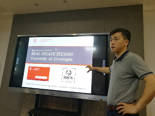 此外,刘博士就荷兰格罗宁根大学留学项目,特别是房地产专业的招生、培养、就业等情况进行了介绍,鼓励有兴趣的学生积极申请进行学术深造。西北工业大学的任洪浩副教授(2004~2011年在贝博官网土地资源管理专业进行本科和硕士学习,2015年10月取得格罗宁根大学房地产专业博士学位)参加了报告会,并通过自身在格罗宁根大学的学习和生活情况,与参会师生进行深入交流。