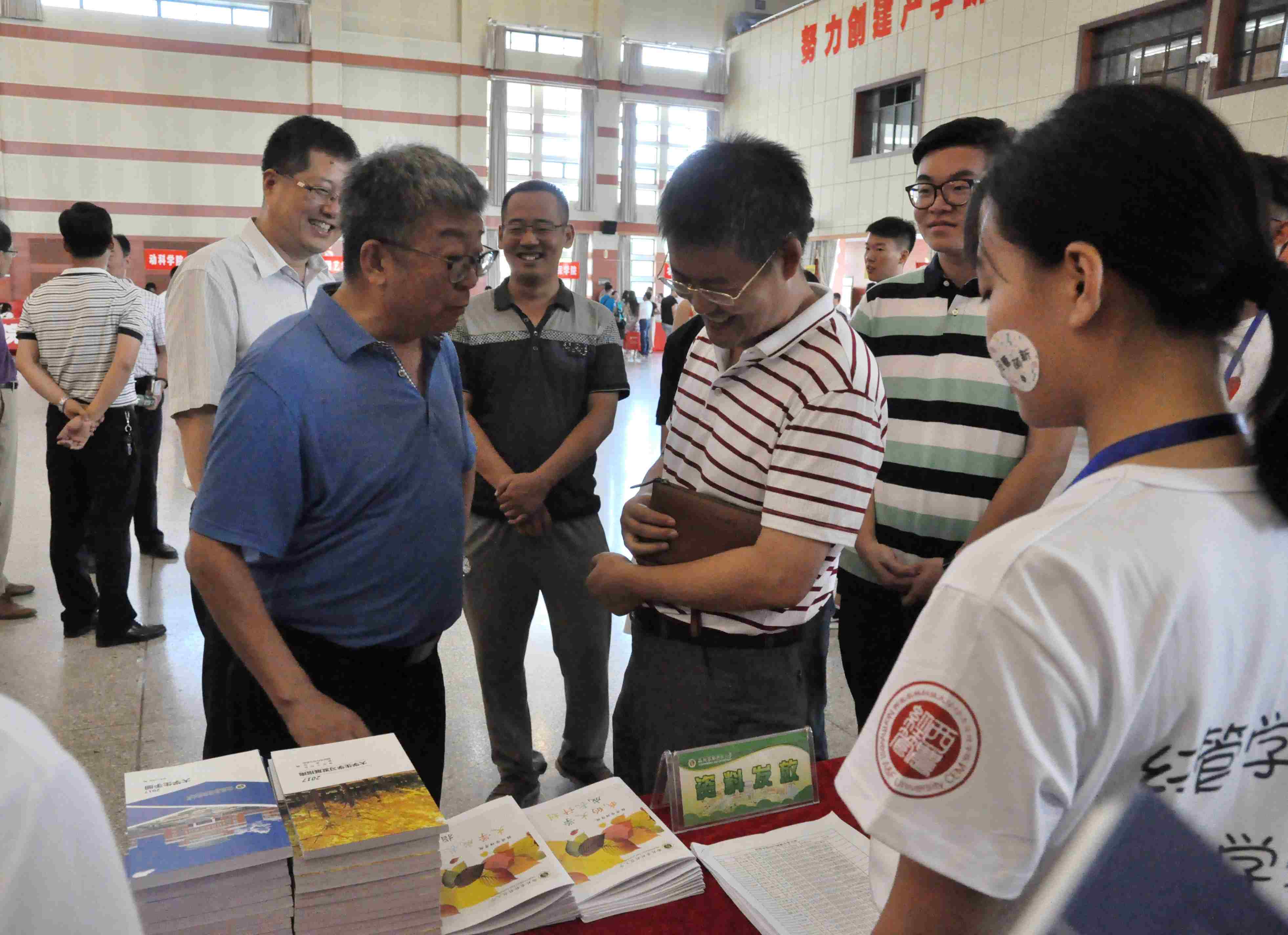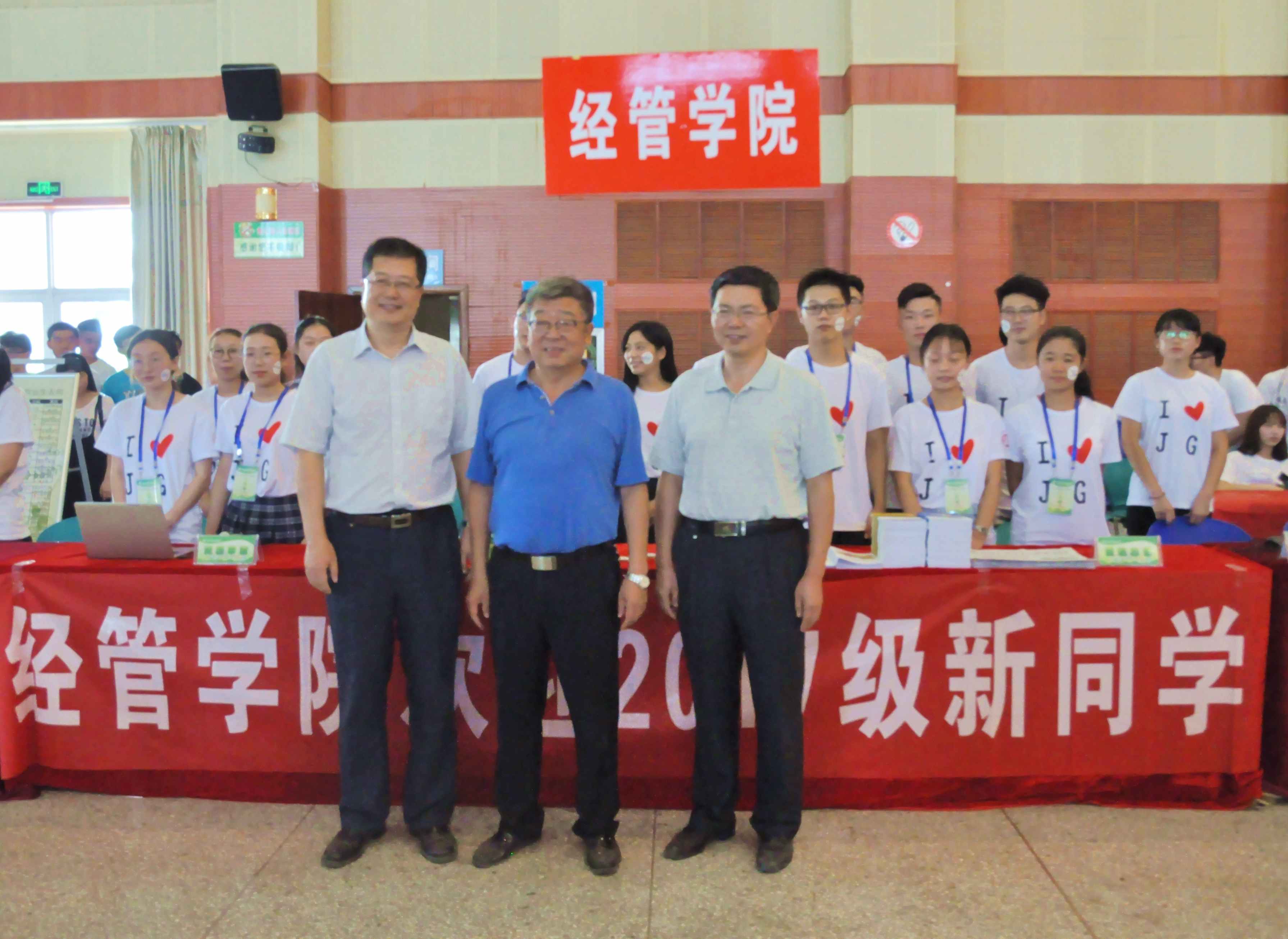 贝博官网负责迎新工作的学生干部们统一着装印有“我爱经管”字体的T恤,脸上贴着由学生自己设计的印有“经管萌新”图案的贴纸,认真细致,朝气蓬勃的进行着准备工作,现场井井有条。吴普特行至经管学院报到区域前,充分肯定了经管学院迎新准备工作的高效、认真,饶有兴趣地翻阅了学工干部为新生和家长们准备的《大学生成长手册》及《成长手册》家长版后对此项工作表示认可。同时,希望迎新的学生干部们能以饱满的热情保证迎新工作圆满进行。吴普特还指出,经管学院是学校人数最多的学院,工作量大,任务繁重,更需要大家打起精神,精诚团结。视察后,校领导与贝博官网团学干部合影留念。