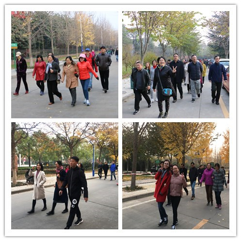 据悉,此次“喜庆十九大,阳光健步走” 活动是学院“冬季健身活动月”的活动安排之一。活动奉行“我运动,我快乐”的宗旨,鼓励教职工暂且放下手头的工作,走出办公室,呼吸新鲜空气,锻炼自己身体,欣赏深秋景色,领略校园风光。同时,还缓解了教职工的工作压力,激发大家深入学习十九大精神的工作热情,引导大家在关心国家、关注教学、钻研科学研究的同时,不要忘记锻炼身体,以健康的姿态、年轻的心态、完美的状态为实现中国梦的伟大复兴贡献自己的一份力量。