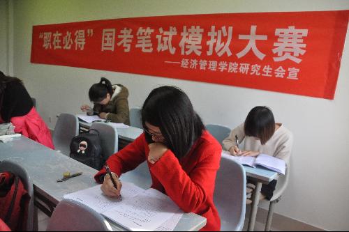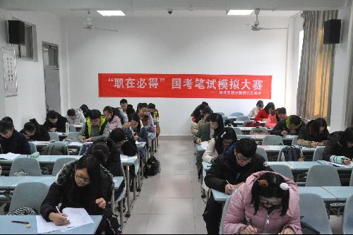 公务员考试无疑是很多同学的就业选择,但其竞争的激烈程度也可想而知。通过这次的模拟大赛,一方面可以帮助同学们了解与熟悉国家公务员考试的流程,在模拟考试的过程中自我检查,发现自己的不足从而改正,另一方面也为正在备战国考的同学创造一个能力自评的机会,为在接下来的实战考试中做好充分准备。