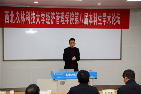 本届论坛以“实践·研究·创新”为主题,自11月启动以来,经过一个多月的宣传与准备,共征集论文40余篇,经专家评审委员会的初审和复审,评选出24件优秀作品参加论坛交流。论坛中,同学们紧扣主题,对自己论文进行精彩汇报,专家教授对论文的研究主题、研究方法、研究思路和创新点进行全方位点评,并对论文的修改完善提出了宝贵的建议和意见。本届学术交流论坛还出现了以英文撰写的论文,使贝博官网本科生创新创业项目与国际接轨更近一步。经过专家公开、公平、公正评审,任亚琴同学的题为《Investigation and Analysis on Logistics Mode of Fresh Fruit Ecommerce-Taking Zhouzhi and Meixian as Examples》和马明义同学的题为《秦巴山区农户多维贫困测度及精准扶贫对策研究》论文获一等奖,朱嘉林等三名同学论文获二等奖,陈洛川等四名同学论文获三等奖,王思佳等六名同学论文获优秀奖。