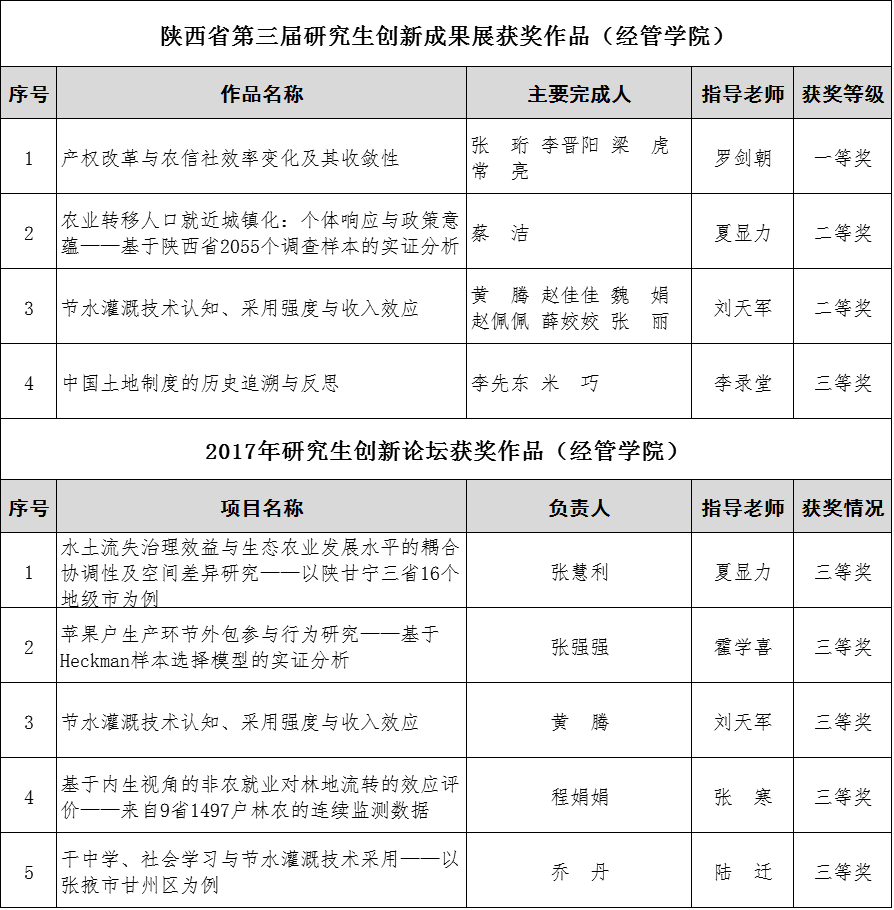 同时,为充分展示我校的科技创新和研究生培养成果,研究生院以陕西省第三届研究生创新成果展为契机,举办2017年研究生创新论坛,经过校内专家初评和终审答辩两个环节,共评出校级研究生创新论坛优秀作品18件,贝博官网5名研究生入围三等奖,获奖比例高达27.78%。近年来,学院以生源质量为抓手,相继出台系列研究生“双创”能力提升计划,政策初显成效,未来学院将继续落实研究生培养制度建设,为“三农”事业做好卓越人才储备工作。