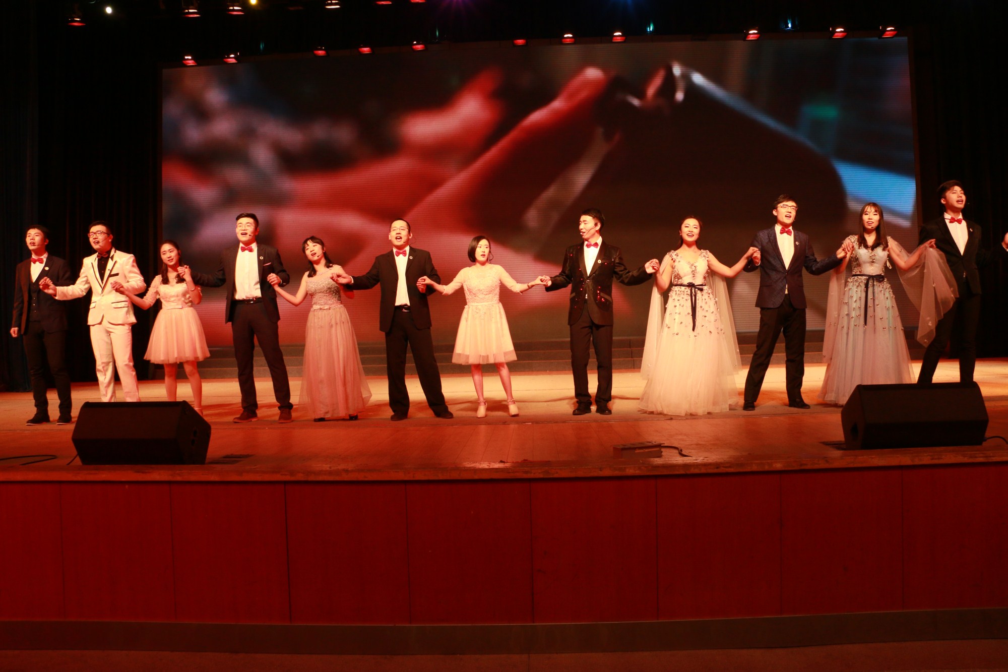 把握正确导向,以文艺晚会促十九大学习氛围。“五!四!三!二!一!”在震撼的倒计时中,元旦晚会拉开了帷幕。“我爱你中国,亲爱的母亲,我为你流泪,也为你自豪。”开场节目由经管学院全体辅导员及现场千余名学生共同合唱《我爱你,中国》,用歌声唱出师生对祖国的肺腑之爱,学院2018年元旦文艺晚会的大幕正式拉开。