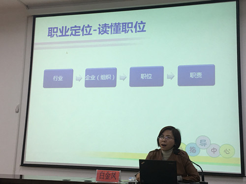 为了消除毕业生的就业疑惑, 帮助同学们树立正确的就业观和择业观,促进同学们对就业形势地了解,进一步提高就业能力, 3月16日下午于经管学院C401会议室举办“简历撰写三剑客,让你的简历hold住HR”专题讲座,我校就业指导中心副主任白金凤老师主讲,与同学们畅谈简历撰写与就业指导问题,让就业指导深入人心。