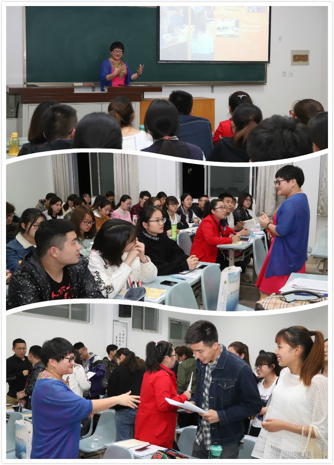课程伊始,副院长刘天军代表学院欢迎张老师再次来学院给本科生做创业培训,他强调参加学习的同学应珍惜机会,和张老师多交流,真正在此次学习中受益,实现自己的创业梦想。随后,张老师用流利的英语为大家展开课程的内容。授课中,张老师分别对创业的基本定义进行解释,鼓励大家参与“破冰行动”,帮助大家尽快融入到学习中。接着张老师通过让学生观看简短的视频与案例分析,帮助学生一步步正视自我、探究创业内涵和真谛。