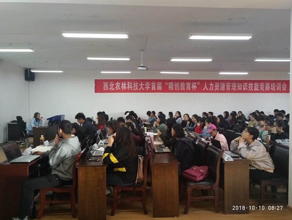 10月10日,西北农林科技大学首届“精创教育杯”人力资源管理知识技能竞赛培训会在经管学院C401会议室顺利举行。“精创教育杯”人力资源管理知识技能竞赛由教务处和经管学院共同主办,比赛采用浙江精创教育科技有限公司提供的专业模拟沙盘和实训平台软件。培训邀请到了来自浙江精创教育科技有限公司的高级讲师徐书霞老师和卜勇祥老师,经管学院管理系主任刘超副教授、梁洪松副教授、邱璐博士及300余名学生参加了此次培训。