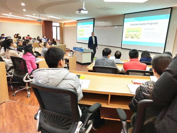 座谈会邀请来自加拿大Alberta大学的Vic Adamowicz教授,为师生们奉上了一场精彩的海外留学讲座。Vic Adamowicz教授向贝博官网师生详细介绍了加拿大Alberta大学的科学研究领域、ALSE暑期项目及留学费用等相关内容,并对学生海外访学及留学发展进行相关指导。会议现场,Vic Adamowicz教授围绕师生关心的留学院校环境、专业选择、学位学制等方面的疑问进行了详细解答。