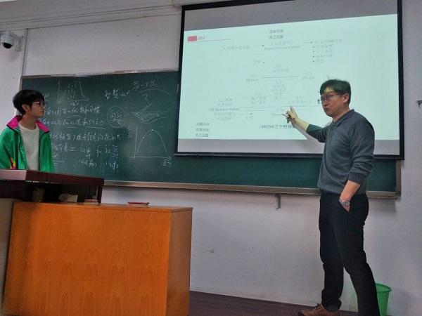 “人力资源三支柱模型是在如今移动互联网、大数据、人工智能等新技术不断冲击传统人力资源管理模式……”,在《人力资源管理》“共享课堂”的模式下,工商管理专业王欣然、余炎,王一名三位同学组成的团队,正在为全班展示“人力资源三支柱模型”这一学科前沿的内容。在课堂上,同学们踊跃发言提问,即时互动、形成反馈的高效课堂。余炎同学在课后说,通过“共享课堂”的创新教学模式,我体会到了学生在课堂上的主体地位,老师以问题为导向,让我们进行系统思考,热爱专业、更有兴趣学习。