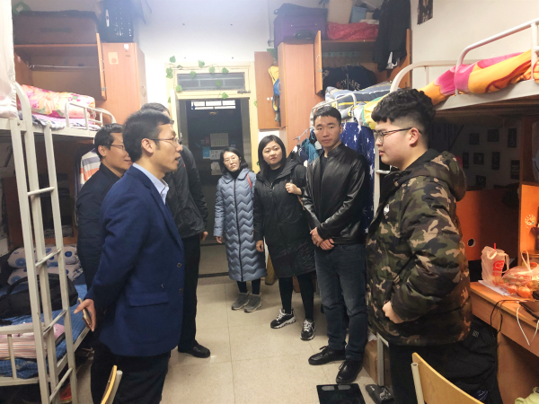 “有困难一定要及时联系学院,告诉辅导员老师。”在得知2018级行动不便学生张文卓在克服身体不适的情况下仍坚持求学,并在上学期顺利通过所有课程,学院领导关切的说道。进入宿舍后,学院领导与同学们亲切交谈。“新学期还适应吗”“平时课程紧张吗”“学习是否有困难?”“毕业后有什么打算?”每到一间宿舍,学院领导都关心询问同学们的学习、生活等各方面情况。随后,学院领导对学生宿舍违章电器等安全隐患进行了检查。