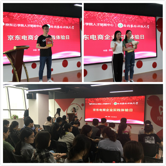 随后,在京东云西安创新空间,在京东云负责人的引导下,同学们参观了创新空间的线上与线下经营与产业扶贫情况,了解京东云创新空间的建立背景和企业入驻的情况;在创新空间的京东云学院聆听了京东大学老师关于电子商务运营技巧的授课,并在现场参与互动答题。同学们感慨道:“京东云学院是一个项目孵化器,推动了陕西本土中小企业的发展”。