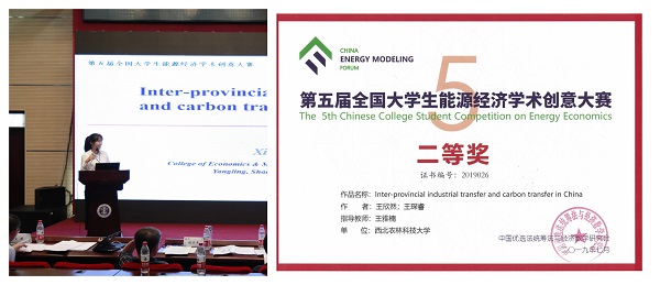 围绕能源经济问题开展大学生的学术创意大赛是提升能源经济学科人才培养质量的重要环节之一,此次参赛学生作品受指导教师王雅楠老师主持的教育部人文社会科学研究项目(18XJC790014)和陕西省自然科学基础研究计划项目(2019JQ350)资助,再次体现了学院科研促教学的成果;同时获奖学生中多数是贝博官网国际创业班的优秀学生,她们的出色表现彰显了贝博官网学子的追求卓越的精神,是我校陕西省重点攻关教育教学改革项目《农林经济管理专业“广谱式”创新创业人才培养模式研究》(项目编号:17BG006)研究成果的重要体现。